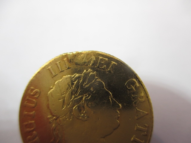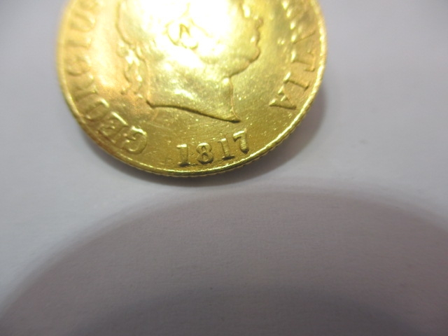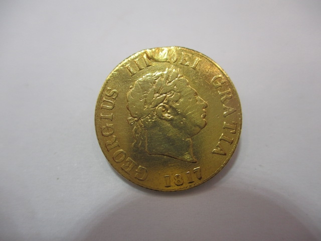 A George III gold half sovereign, dated 1817, a circulated coin with fine definition of features, nip to edge